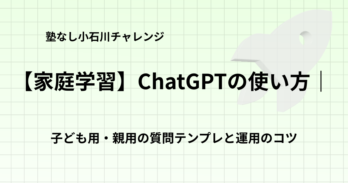 👉 【家庭学習】ChatGPTの使い方|子ども用・親用の質問テンプレと運用のコツhttps://koishikawa-juken.com/?p=301